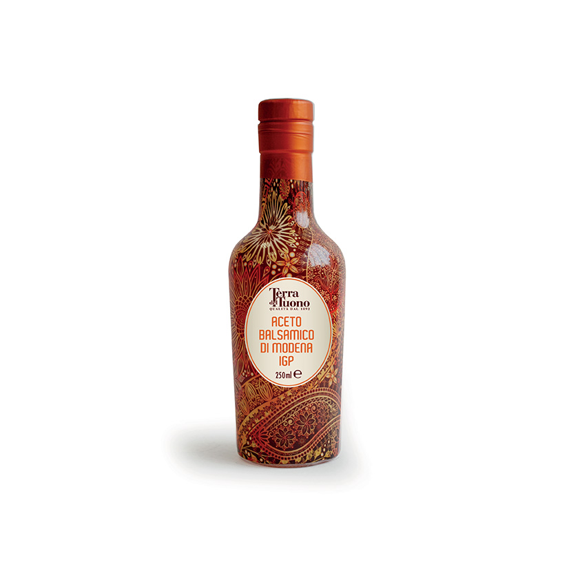 Der Balsamico-Essig aus Modena Terra del Tuono zeichnet sich durch leichten und frischen Geschmack aus, setzt ein ausgeprägtes Gefühl flüchtiger Säure frei, am Gaumen wird ein leicht aggressiver Geschmack wahrgenommen.