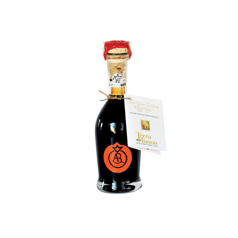 Der traditionelle Balsamico-Essig von Reggio Emilia Terra del Tuono „rotes Etikett“ reift seit mindestens 12 Jahren in kleinen Fässern aus verschiedenen Hölzern. Hauptsächlich verwendet werden Eichen-, Kastanien-, Maulbeer-, Kirsch-, Eschen- und Wacholderfässer, von denen jedes ein bestimmtes Aroma verleiht.