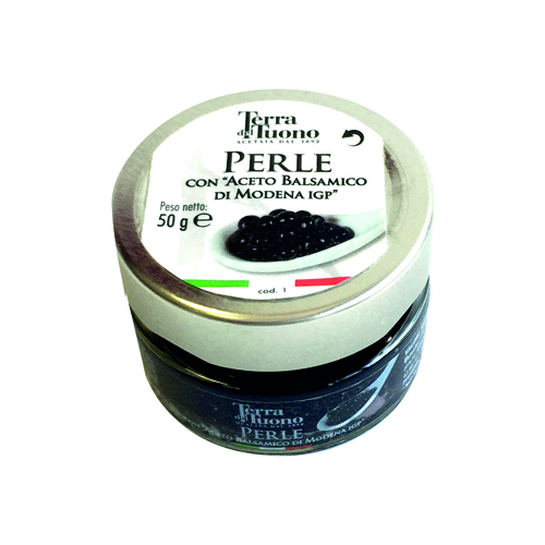 Les perles avec vinaigre balsamique de Modène sont de petites sphères de consistance molle avec un cœur liquide de notre meilleur vinaigre balsamique de Modène, gardant le goût inchangé et concentrant les arômes et les parfums.